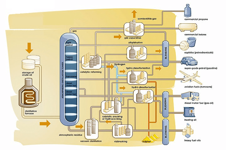 Refineries, through processes like fractional distillation, separate crude oil into various compounds based on their properties. Interestingly, the techniques used in refineries initially came from alcohol manufacturing during the Prohibition Era.
