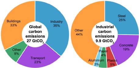 Steel production is carbon-intensive, responsible for ~7-8% of the world’s greenhouse gas emissions.