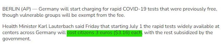 When President Biden finally embraced antigen tests, the government chose to buy overengineered products from the three approved vendors. Honestly, the U.S. government was probably better off buying tests from the stores in Germany and shipping them to the U.S. Now you know why these tests were so expensive in the US? The lack of open competition for a commodity product.